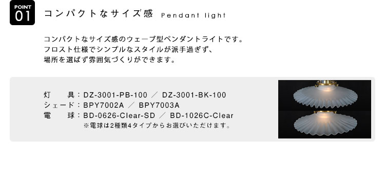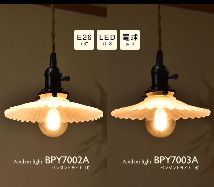 ペンダントライト 【電球あり/コード100cm/カバーなし】 ガラス LED E26 1灯 天井照明 おしゃれ 北欧 アンティーク モダン レトロ ダイニング キッチン ※電球灯具セット※ 商品番号:BPY7002A/7003A-DZ3001100-B Pendant Light ペンダントライト BPY7002A BPY7003A [LED電球灯具セット] コンパクトなサイズ感のウェーブ型ペンダントライトです。