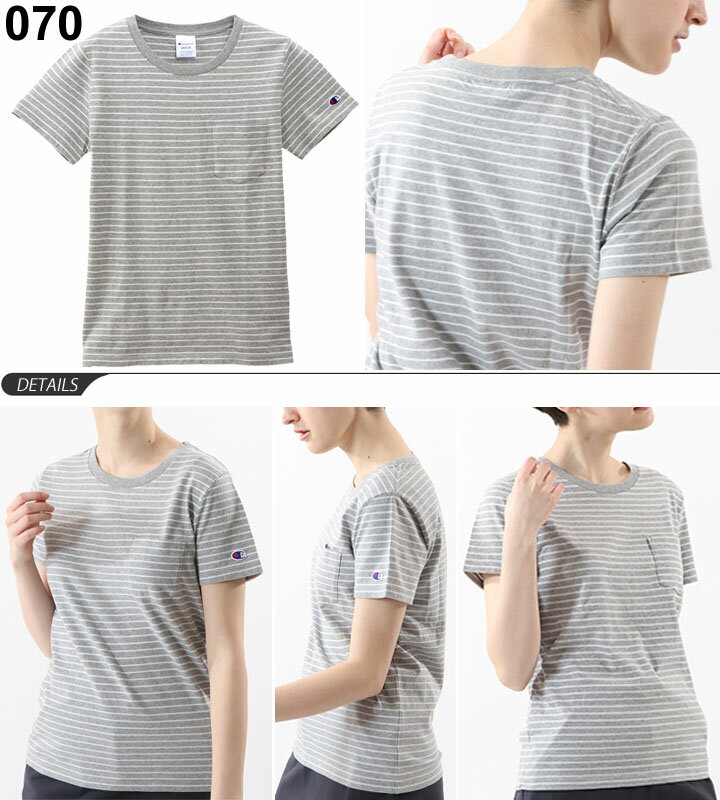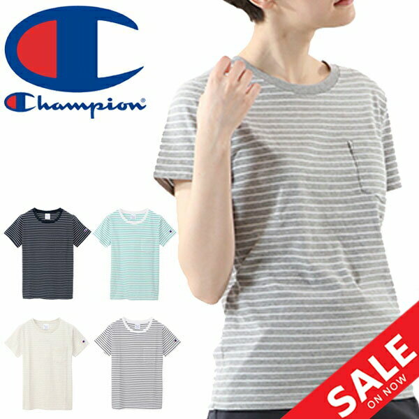 Tシャツ 半袖 レディース チャンピオン Champion ポケットTシャツ/ボーダー柄 クルーネック シンプル 女性用 半袖シャツ カットソー カジュアル トップス /CW-P301