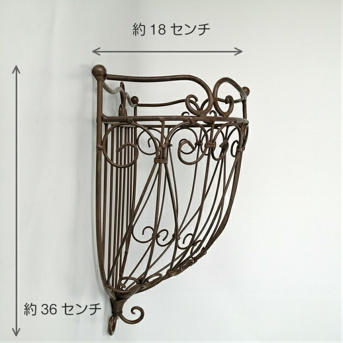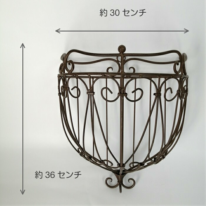 幅30×奥行18×全高36センチ 最大内寸 幅28×奥行16×深さ30センチ アイアン製 アンティークな風合いのおしゃれな アイアンバスケットはハンギングや 壁掛けにピッタリです。