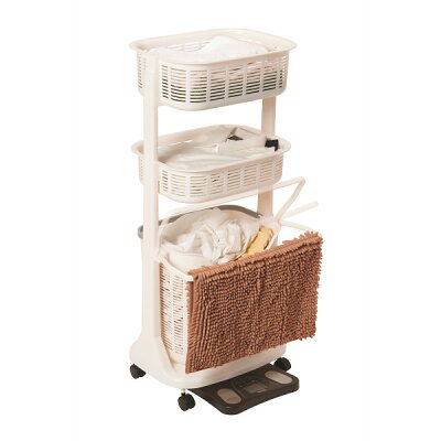 3段バスケット(バスマット干し付) 台所 日用品 収納 家庭日用品 洗たく小物用品 ランドリーBH402W(代引不可)