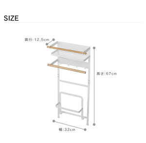 便利な収納ラック 珪藻土マットやバスブーツ、洗濯周りの小物などを一括収納! サイズ本体/約幅32×奥行12.5×高さ67cm 上部収納棚内寸/約幅27.5×奥行10.5×高さ7.5cm 下部収納内寸/約幅21×奥行3×高さ21cm(珪藻土バスマット収納部)、約幅20×奥行6.5cm(バスブーツ収納部) 素材本体/スチール(ユニクロメッキ、粉体塗装) 木バー/天然木 マグネット キャップ・ストッパー/シリコーン 重さ約1.65kg メーカー山崎実業 耐荷重上部収納棚/約1.5kg、L字バー/約500g、フック/各250g、下部収納/約4kg 生産国中国 セット内容緩衝材×4 備考取付可能な壁面/磁石の付く平らな面 幅約28cm以上の洗濯機または洗濯乾燥機の側面