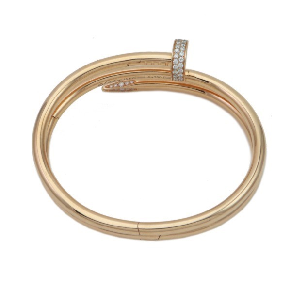 359588【中古】【CARTIER】【カルティエ】ジュスト アンクル ブレスレット 3ロウ K18PG×ダイヤモンド ♯15ピンクゴールド 750 釘モチーフ バングル アクセサリー ブランドジュエリー